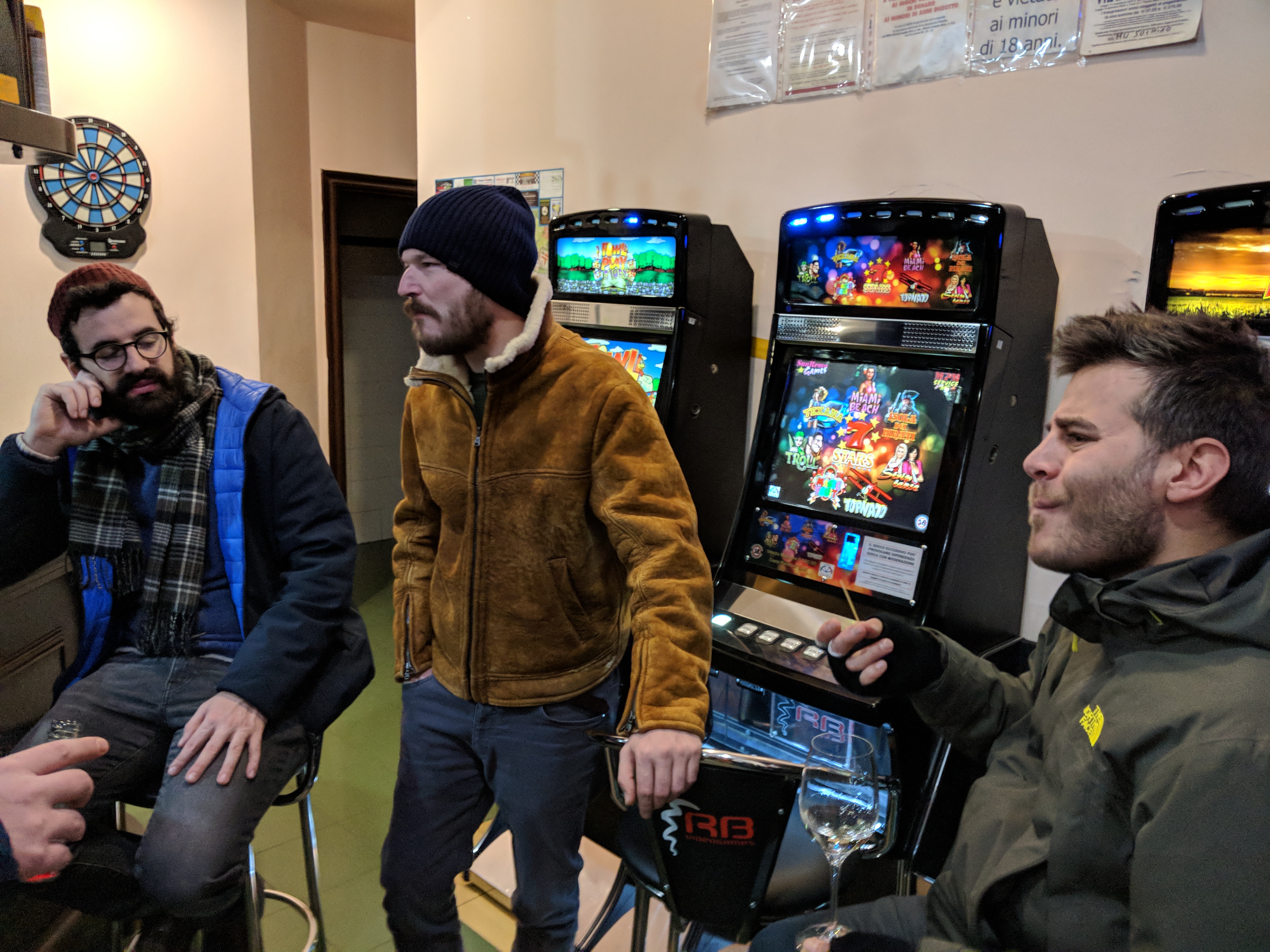 Lo si nota dall’espressione del vero finto nonno di Max Pezzali che vi accoglie all’ingresso del bar.